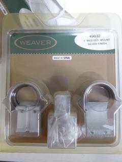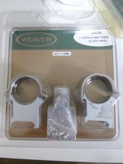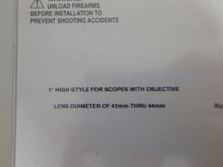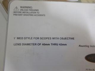 Lot #8289: Weaver Scope Mounts, (1) 1" Medium Mount (OBJ Lens 40mm thru 42mm), (1) 1" Extra High Mount (OBJ Lens 42mm thru 44mm)
