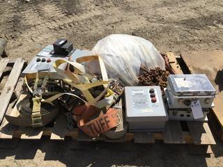 Lot #3105:     Assorted Electrical, Micron Filter Bag (POLOP2SH), Chains & Large Ratchet Straps.