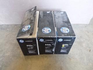 Lot #4033: (3) HP Laser Jet 4730MFP, CM4730MFP Printer Cartridges, (2) 644A (Black), (1) 644A (Yellow) (E2)