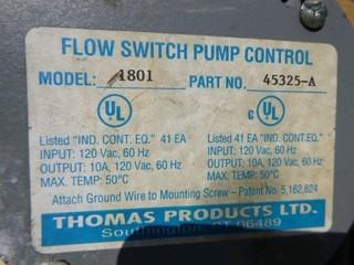 Lot #4642: (3) Thomas Products Ltd Flow Switch Pump Control, Model 1801 *Note 1 Damaged*