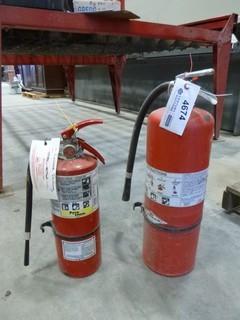 Lot #4674: (7) 10lb Fire Extinguishers, (2) 5lb Fire Extinguishers, C/w Wall Mounts