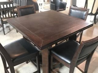 Lot #0118: Brown Round Table w/ Adjustable Sides & 4 Chairs 59.5 x 59.5.