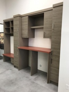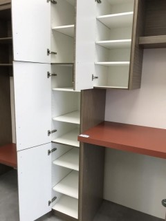 Lot #0703: Showroom Laundry Cabinets, countertop, and bench *Buyer Responsible For Dismantle and Load Out, Located at 1629 - 32 Ave N.E., Calgary, AB. For More Info Call Graham @ 403-968-7697*