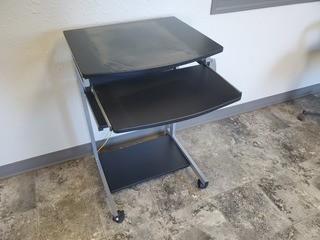 Lot #1104: 22in X 21in X 33in Portable Computer Cart w/ Pull Out Tray