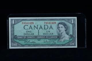 Lot #0226: 1954 Canada One Dollar Bank Note B/F4541428.