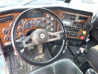 Lot #0101: 2006 Western Star 4900SA Texas Bed Winch Tractor, Detroit Diesel 60-14, 515 HP, Showing 863.276 KM, Showing 14375 HRS, 18 Speed Eaton Fuller, Triple Diff Lock, Tires Front 446/65R22.5 95%, Rears 11R24.5 65%, Sliding 5th Wheel, 34" Sleeper, Tulsa 30 Ton Hyd. Winch, Air Ride Cab, Alum Wheels, Double Frame, Live Roll, Aux Hydraulics, LED Lighting, C/w Spare Belts, Filters (4), Slings, Tire Chains, Storage Cabinet, Beacons, CVIC Expires 06/21, VIN 5KKPALCK06PV64630