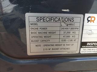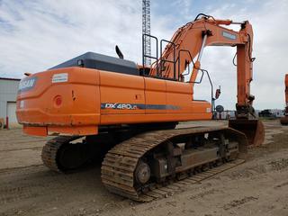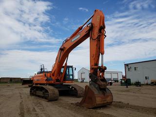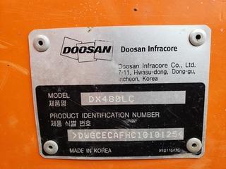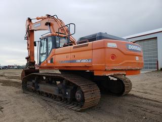 Lot #0270: 2013 Doosan DX480LC Excavator c/w A/C Cab, 60" Dig Bucket, Showing 7,288 Hours, Hyd Q/C, Adjustable Under Carriage With New Sprokets And Rollers, Hydraulic Counter Weight Removed, Positive Air Shut Off, SN DWGCECAFHC1010125 *Located In Lloydminster, AB, Contact Connor For More Details 780-218-4493*