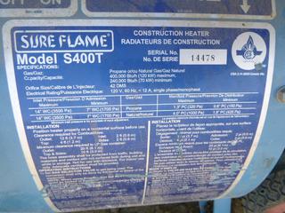 Lot #0762: Sure Flame Construction Heater, Model S400T, Propane or Natural Gas, 120V, 12A Single Phase (WR1)