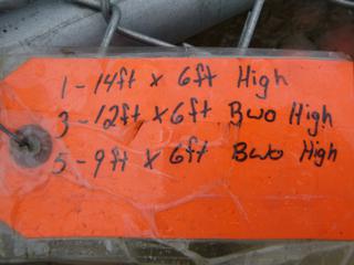 Lot #1786: (1) Gate Panel x 6' High, No Barbwire, Approx 14' Opening, (3) Gate Panels x 6' High, w/ Barbwire, Approx 12' Openings, (5) Gate Panels x 6' High, w/ Barbwire, approx 9' Openings