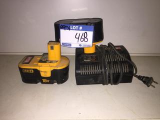 Lot #0468: Ryobi Battery Charger & (2) 18V Batteries.