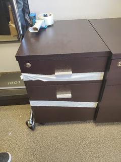 Lot #0149: Wood Desk (23.5" x 47") w/ Rolling 2 Drawer Filing Cabinet - Not to be removed till June 29th. (No exceptions)