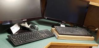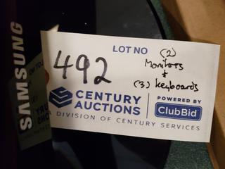 Lot #0492: (2) 22 1/2in X 13 1/2in Samsung LS24C300 Monitors C/w (3) Keyboards