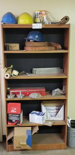 Lot #0576: 35 1/2in X 12in X 72in 6-Tier Shelving Unit C/w (3) Hard Hats, Slings, 1-Ton Drum Lifter, Disposable Respirators And Incomplete Socket Set