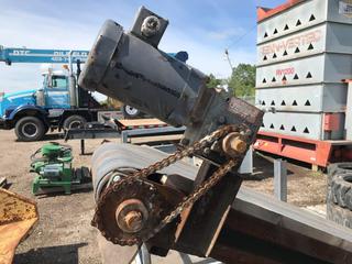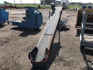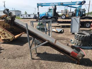 Lot #9008: Selling Off-Site Incline Conveyor 108" Long, 16" Wide c/w Electric Motor. Located at Beiseker, AB Viewing By Appointment Call Graham @ 403-968-7697. *Note: Buyer Responsible for Lifting and Loading.*
