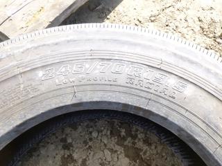 Lot #0697: (1) Bridgestone R-250 245/70R19.5 Tire, (1) Aeolus HN 366 225/70R19.5 Tire, (1) Hercules 5-309 225/70R19.5 Tire, (WR-1)
