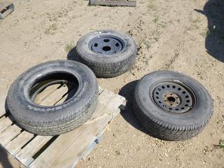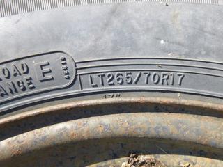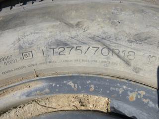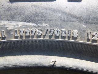 Lot #0674: (1) Michelin LTX A/T 2 Tire, Size 275/70R18 w/ 8 Stud Rim, (1) Continental LT 275/70R18 Tire, (1) Stampede Sigmac LT 265/70R17 Tire w/ 6 Stud Rim, (WR-1)
