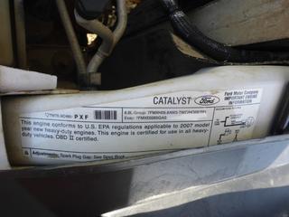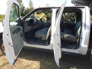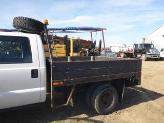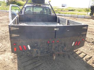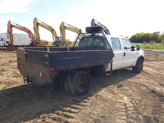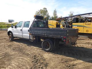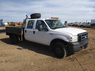 Lot #0093:     2007 Ford F350 Flat Deck 4X4 Crew Cab c/w Triton V10, A/T, A/C, Showing 179,043 KMS, 9' Deck, Dually, 245/75R17 Tires, VIN 1FDWW37Y17EA40845
