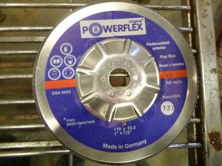 Lot #1222:     (1) Box of Powerflex Flap Discs, 7" x 7/8", 120 Grit (E4-21)