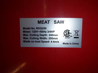 Lot #1387:     (1) Meat Saw and Grinder, Model RDQ250, 3/4 HP, 12V, 60HZ, Cutting Depth 240mm, Cutting Width 250mm (ww-5,4)
