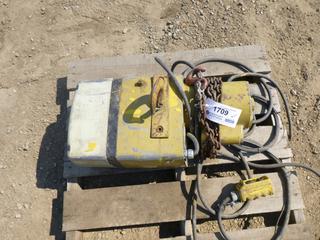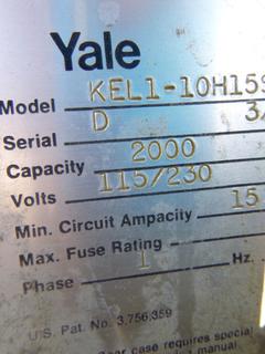 Lot #1709: Yale Electric Com - Along, Model KELI-LOH 1551, 2000lb Capacity, 1 Phase, 1/2 HP, 115/203V, C/w General Electric A/C Motor (Fichtenberg/Higher Ground Acreage Dispersal), (WR-3)