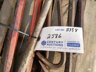 Lot #2586: Quantity of Tools, Crowbars, Prybars, Pipe Bender, Sledge Hammer & Clamps.