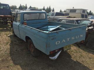 Lot #0657: Selling Off-Site - 527 North 200 East, Raymond, AB - 1970 Datsun Truck c/w Manual Trans, S/N L-S21-144978