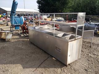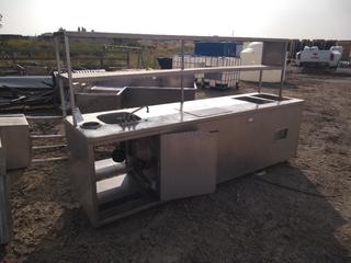 Lot #3035: Stainless Steel Serving Center with Shelves, Sink & (2) Soup Warmers, 30'x66"x111".