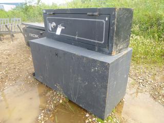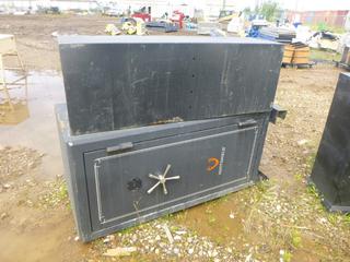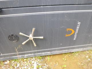 Lot #0646: (1) Stack-ON Gun Safe, 19" x 15 1/4" x 55", (1) Huntshield Gun Safe, 28 1/2" x 28 1/2" x 63 1/2" *Note Damage on Both*