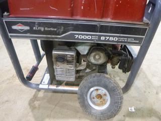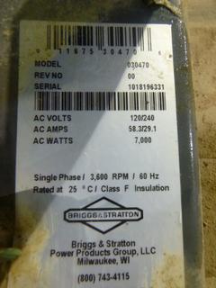 Lot #0329: Briggs and Stratton Generator, Model 030470, Single Phase, 7000 Watts, 3,600 RPM *NOTE: Damaged, Running Condition Unknown*