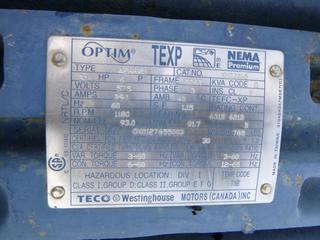 Lot #0735: Teco Electric Motor For Hazardous Locations, 30 HP, 29.1 Amp, 575V, 1180 RPM, SN GX0127655003 *NOTE: Running Condition Unknown*