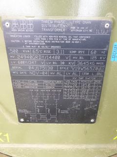 Lot #0599: Three Phase Distribution Transformer, S/N 04J175138