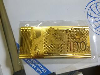 Lot #3390: 24K Gold Plated $100 Bill, (Upstairs)