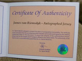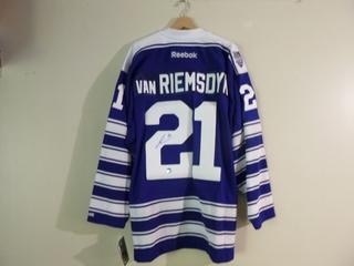 Lot #3293: James Van Riemsdyk Autographed Toronto Maple Leafs Reebok Jersey. Limited Edition 2014 Winter Classic Jersey w/ Exclusive "2014 Winter Classic - "The Big House" Shoulder Patch. C.O.A. from AJ Sports World. Size XL