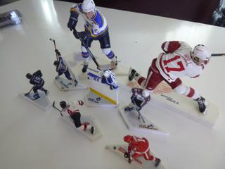 Lot #3265:     McFarlane NHL VRS Edition 8" and 2" Mini Figures Includes Chris Pronger, Brett Hull, Owen Nolan, Al MacInnis, Brendan Shanajan, Peter Fosberg, Scott Stevens and Markus Naslund
