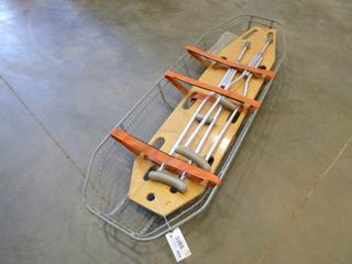 Lot #3385:     Metal Rescue Helicopter Transport Basket, Spine Board, Set of Crutches (W3-3,1)