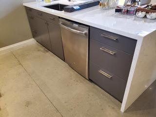 Lot #0088: Condo Style Galley Grey/White Kitchen Cabinet, w/ Matching Island (See Pics for Sizing & Details)