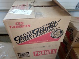 Lot #0128:     (9) Boxes of 4" True Flight Orange Top Clay Disks. Note:  No Forklift On Site, Buyer Responsible For Loadout.