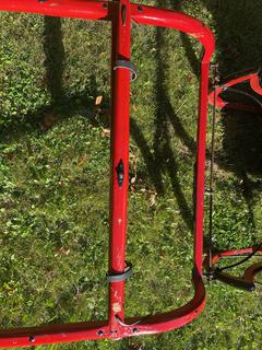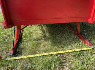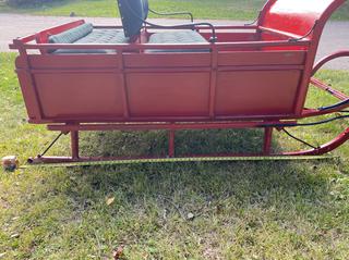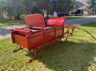 Lot #0114: Light Draft Horse Drawn Bob Sleigh C/w Rear Bench Seat, Single Tree To End Of Shaft Length 73in, Full Shaft Length 93in, Inner Middle Shaft Width 32 1/2in, Rivet Broken On Left Front Shaft, Sled Runners 75in Long 35 1/2in Wide, Height From Ground to Top Rail 28 1/2in Tall