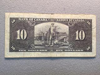Lot #5331: 1937 Bank of Canada Ten Dollar Bill, S/N OD3350906.