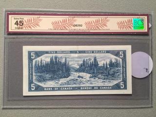 Lot #5365: 1954 Canada Five Dollar Bill, S/N RX1238034, BCS Grade 45.