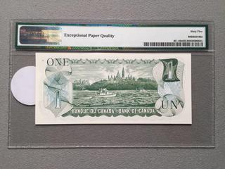 Lot #5369: 1973 Canada One Dollar Bill, S/N ALR2866802, PMG Grade 65 (EPQ).