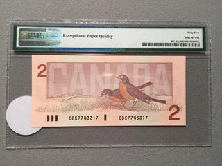 Lot #5366: 1986 Canada Two Dollar Bill, S/N CBK7743317, PMG Grade 65 (EPQ).