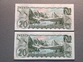 Lot #5319: (2) Sequential 1969 Canada Twenty Dollar Bills, S/N EZ4640252, EZ4640253.