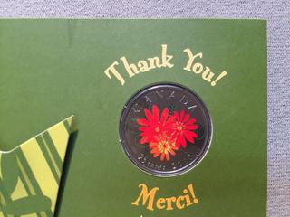 Lot #5376: 2010 Canada Twenty-Five Cent Coloured Coin Thank You Card.
