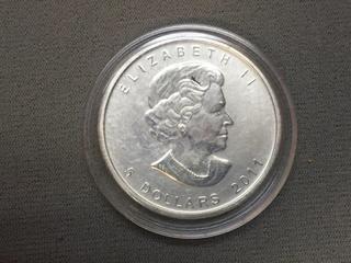 Lot #5551: 2011 Canada One Ounce .9999 Fine Silver Five Dollar Wolf Coin.