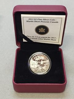 Lot #5591: 2013 Canada Three Dollar Fine Silver Martin Short Presents Canada Coin c/w Display Case.