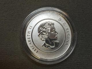 Lot #5562: 2015 Canada .9999 Fine Silver Twenty Five Dollar Canada Flag Colour Printed Coin.
