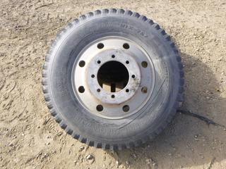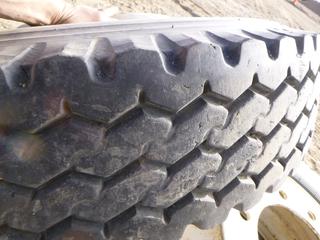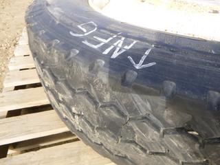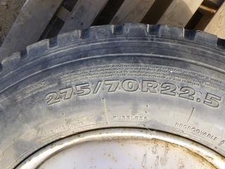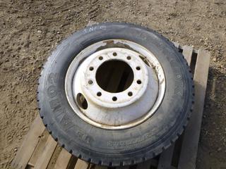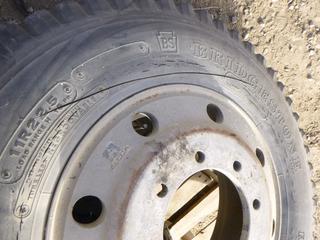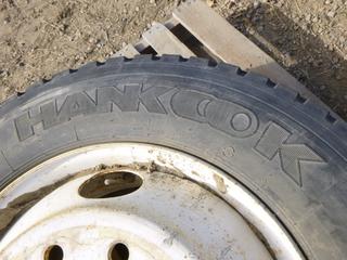 Lot #0766: (1) Hankook Tractor Trailer Tire on 10 Stud Rim, Size 275/70R22.5, C/w (1) Bridgestone V-Steel 11R22.5 Tire on a 10 Stud Rim (ROW 1)