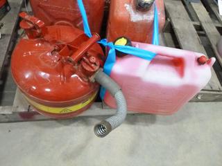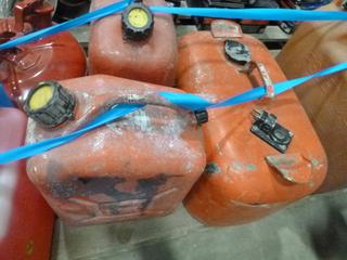 Lot #2362: (2) Petroleum Fuel 20 Litre Cans, (1) Evinrude Gas can for Boat Motor, (1) Safety Can, (2) Fuel 10 Litre Cans (S-5-3)