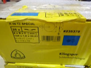 Lot #2322: (4) Boxes Klingspor Kronenflex A 46 TZ Special Cut Off Wheel, 5 In. x 1/16 In. x 7/8 In., Part 235379 (O-2-3)